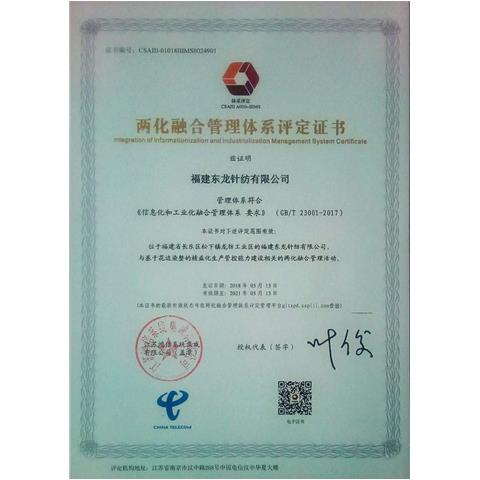 工信部兩化融合管理體系評定證書
