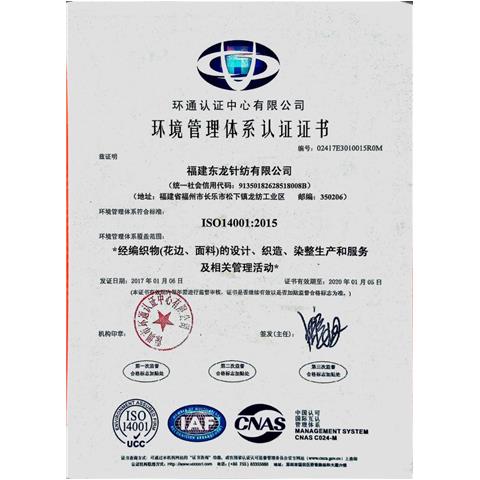 ISO14001環(huán)境管理體系認(rèn)證證書